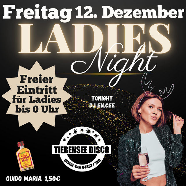 Ladies das ist Eure Nacht. Freier Eintritt für alle Ladies bis 0 Uhr! Special : Guido Maria 1,50 € Your DJ Tonight: DJ En.Cee